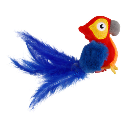 The GiGwi Melody Chaser Parrot is a colourful, fun cat toy. It has a unique sound chip that targets your cats hearing senses with realistic animal sounds that will drive it wild.