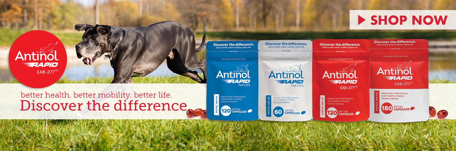 Antinol Rapid is a potent blend of two marine lipid concentrates chosen for their unique nutrient synergy. Use daily as a natural anti-inflammatory for joint and mobility support, for skin and coat condition as well as a wellness influencer/preventative for those looking to be proactive about their pet’s health.
