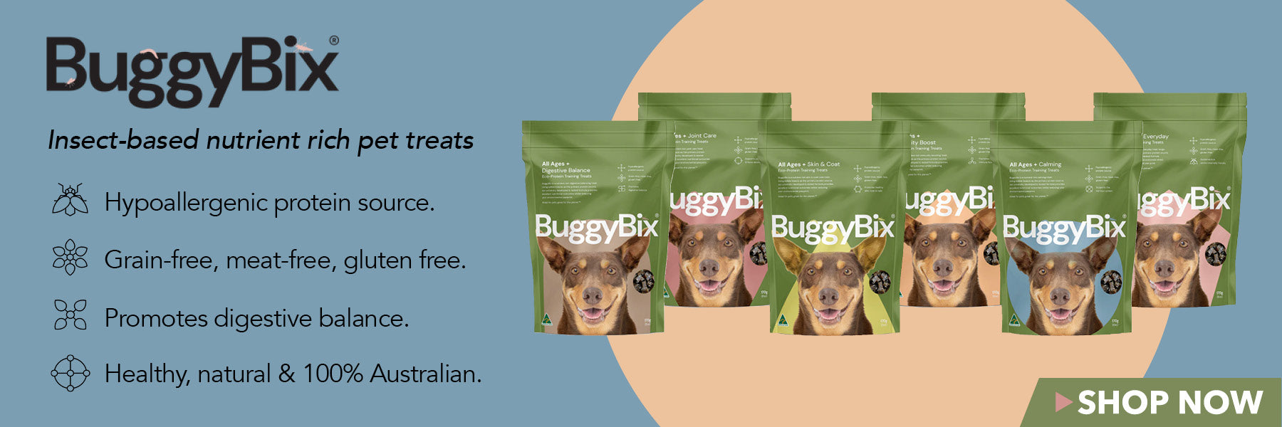 100% Australian made from sustainably sourced insects and blended with real ingredients. BuggyBix are great for pets and great for the planet!