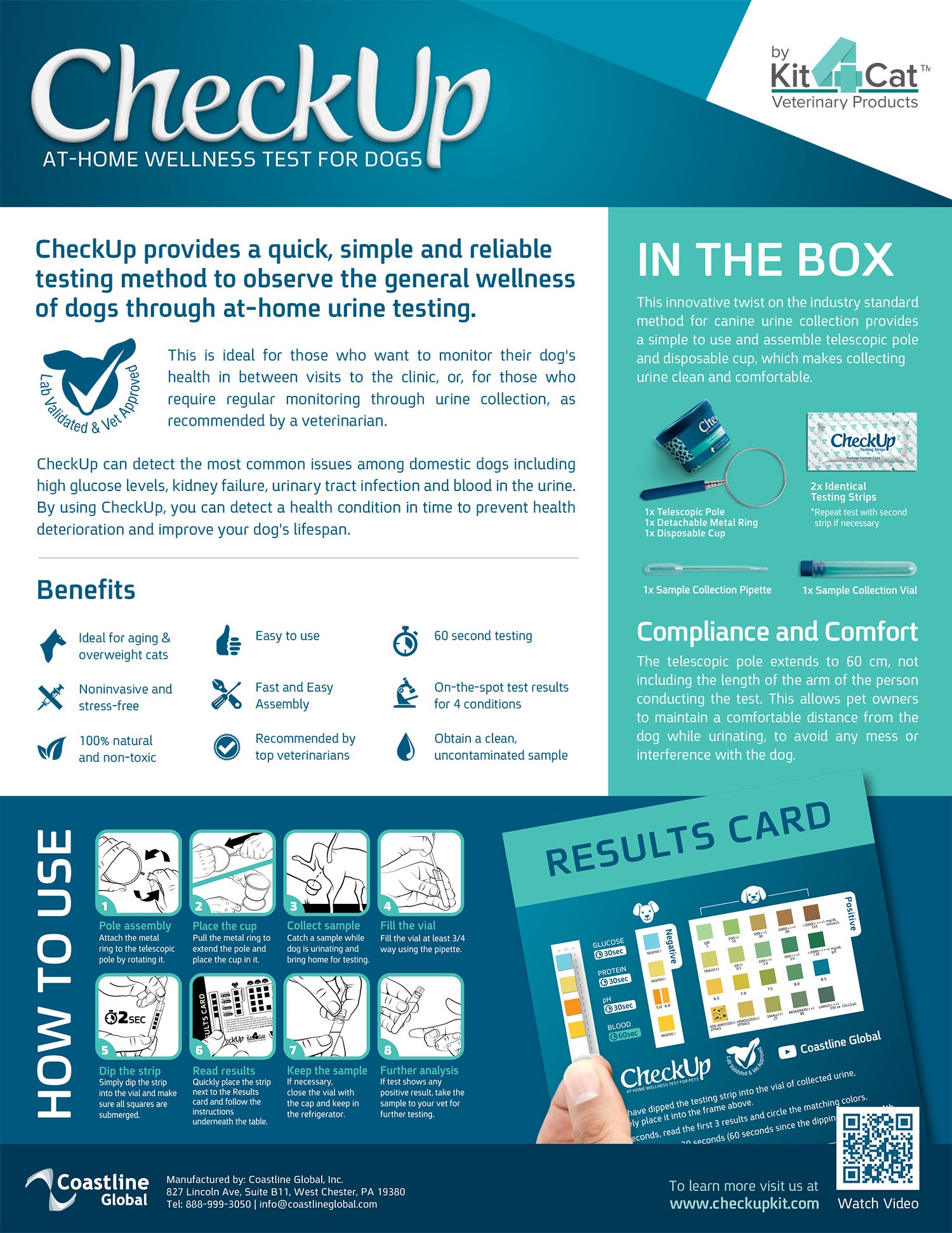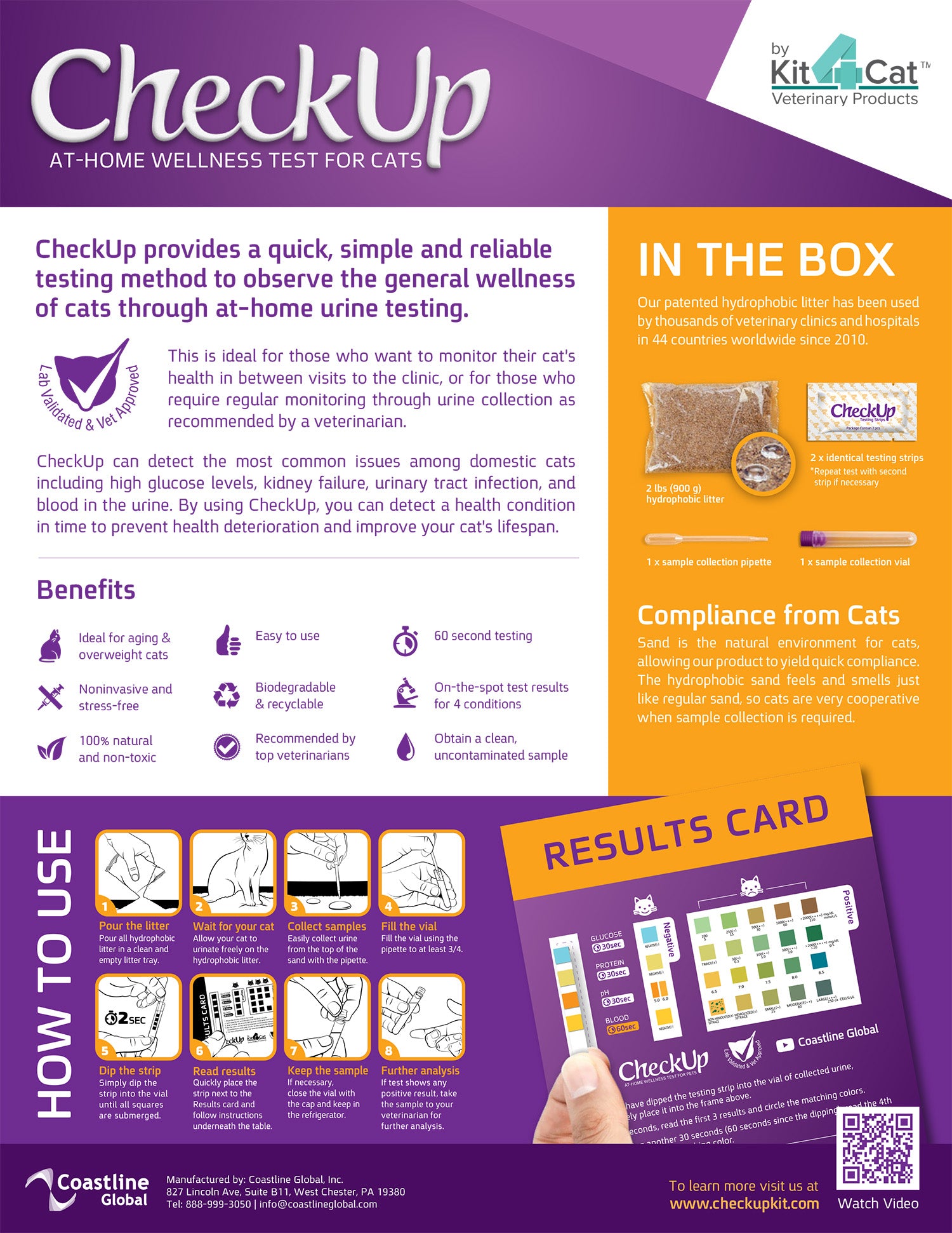 Developed and manufactured by US company Coastline Global, CheckUp is transforming the urinalysis experience for animals, pet owners, veterinarians and researchers. Their patented products help caregivers engage with their pet’s health, simplify the urinalysis process and promote higher animal welfare standards. Simple, Safe & Pain Free.