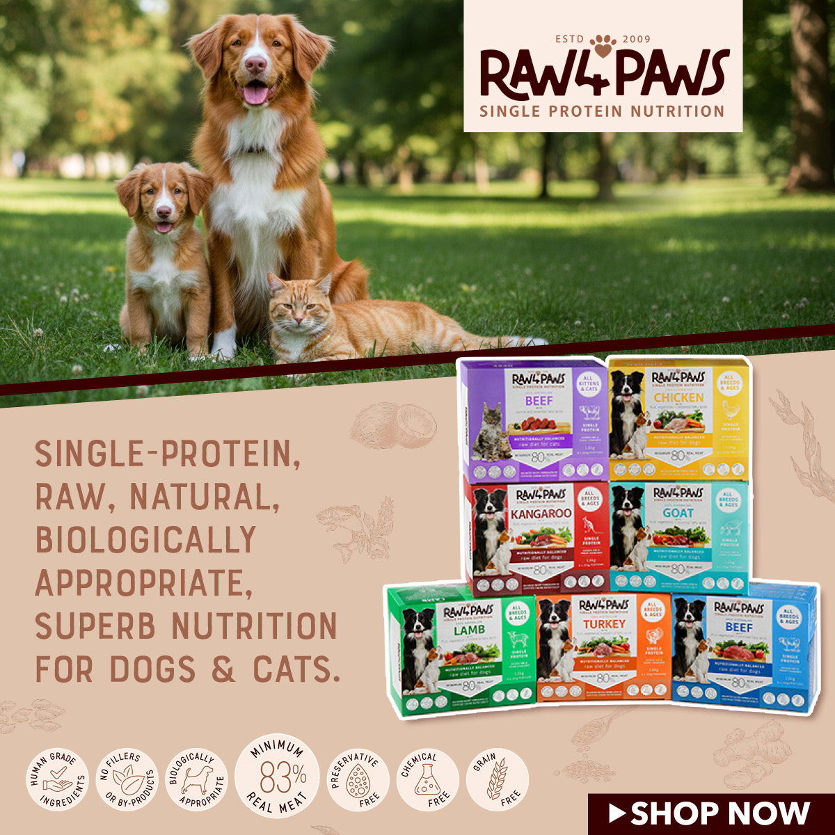 Raw dog food can be comprised either fresh raw meats that require refrigeration, or alternatively air or freeze dried products such as from the Ziwi Peak range, Absolute Holistic or Balanced Life which can be kept on the shelf in your cupboard (very much like a jerky). Even for dogs that are fed predominantly fresh, raw meat products, we recommended keeping one of the shelf stable brands on hand as a backup should it be required.