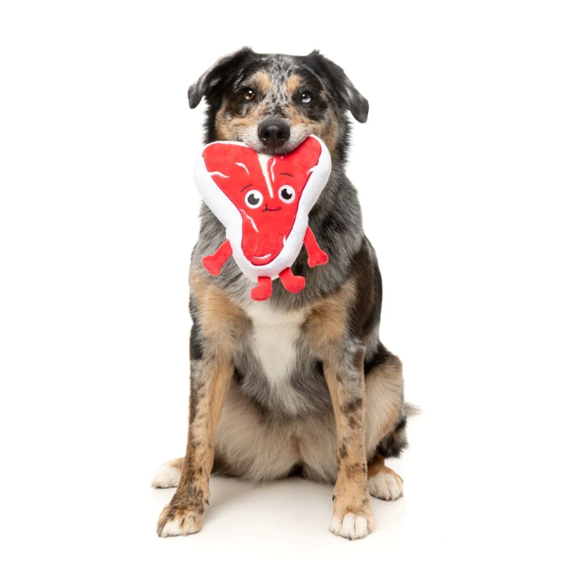 FuzzYard Meat Heads Tim Tee-Bowne plush dog toy is a rare find and your dog will love having this prime cut to play with. With a 'raw' look on the front and 'cooked' on the back, your dog’s mouth will be watering.