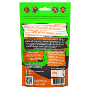 All Barks Farmers Nibbles are made with high quality real ingredients. All Barks have added vitamins and minerals to boost nutritional value and make sure these treats are soft enough for dogs to snack on when you need that little reward or chew treat.