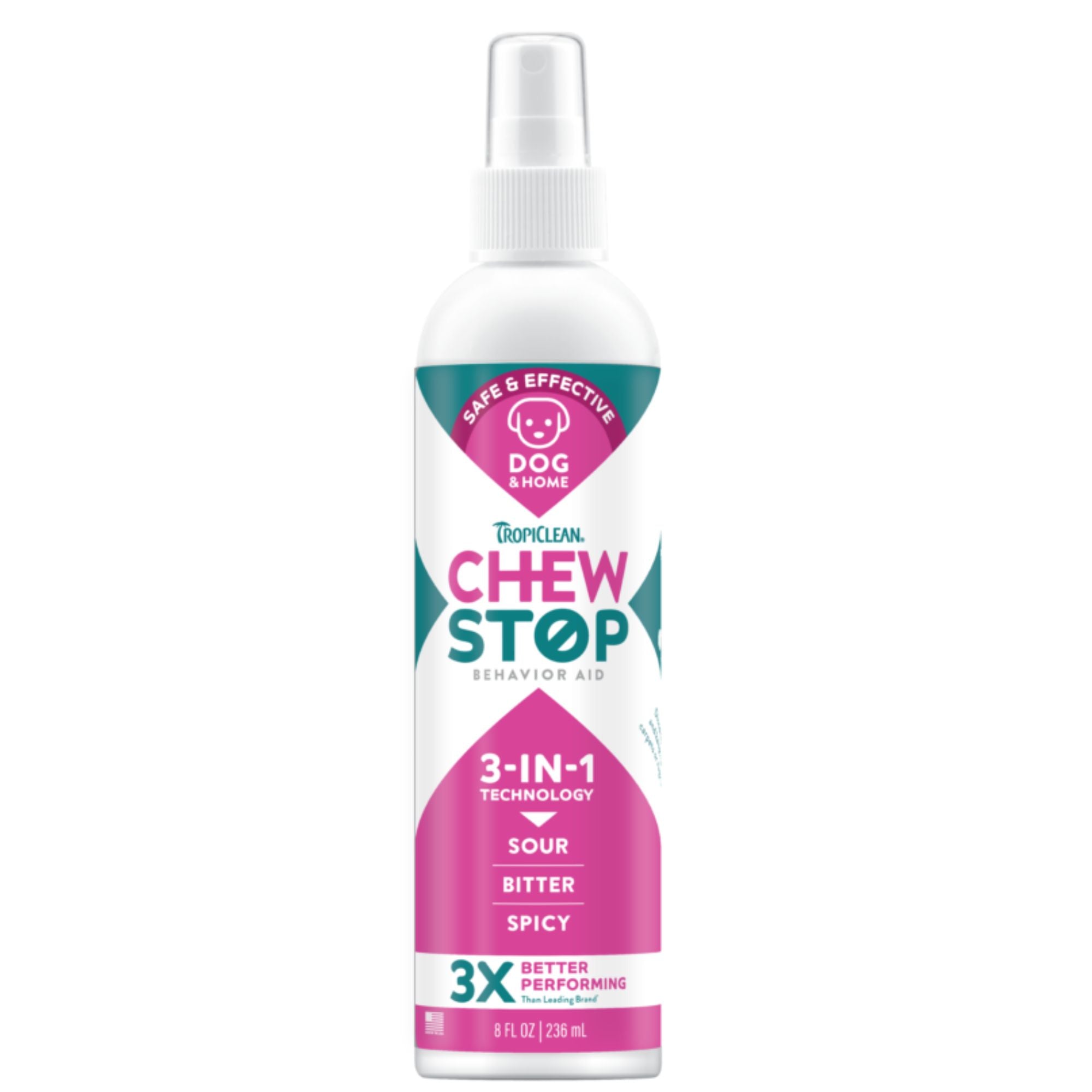 TropiClean Chew Stop Dog & Home Spray is the perfect solution to protect your home and teach your pets better habits! This spray helps prevent destructive chewing on furniture, shoes, cords, and other household items along with helping pets avoid wounds & hot spots.