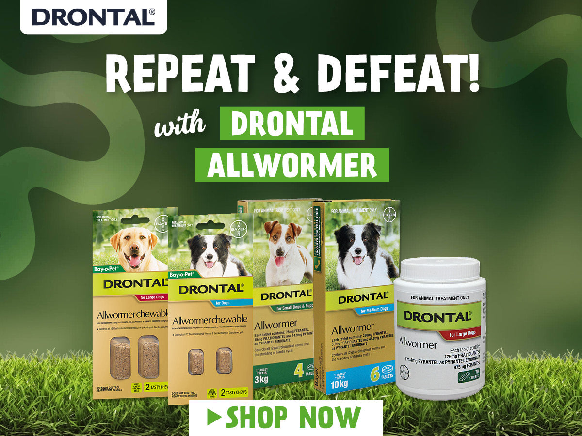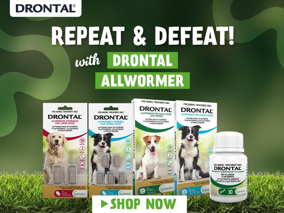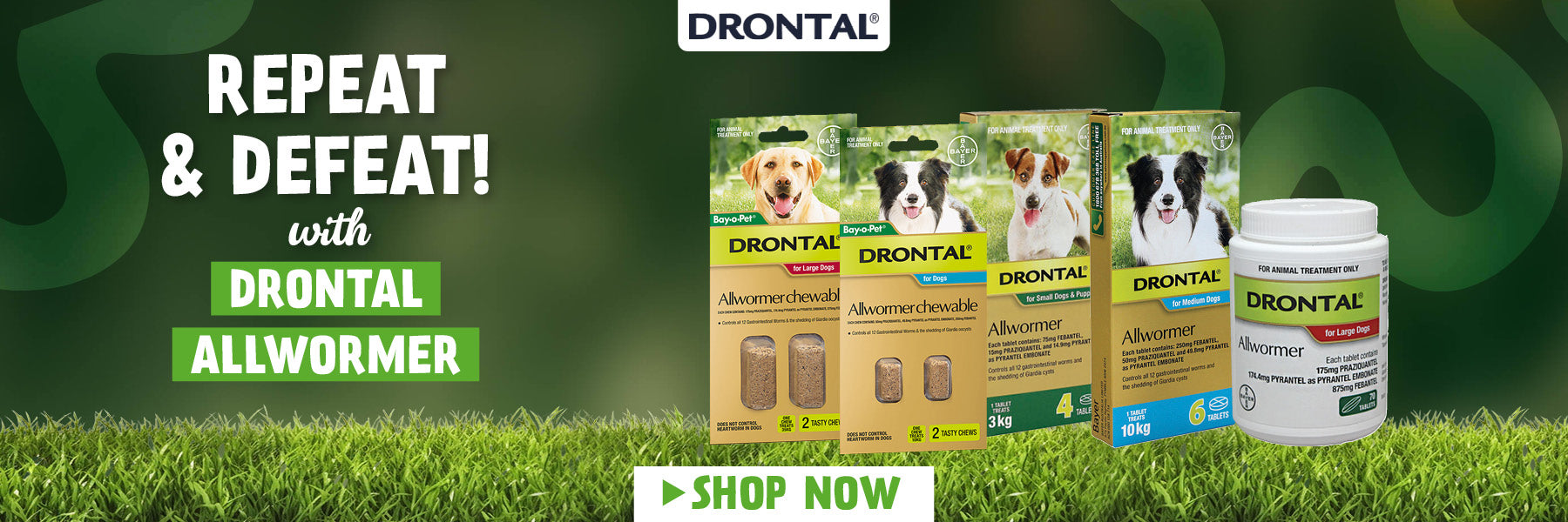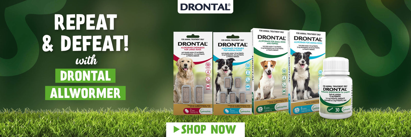 Protect you pet against intestinal worms with Drontal. Available in tablets for Dogs & Cats, liquid for puppies or tasty chews for your dog.