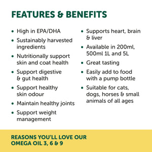 Healthy fats are an essential part of every pet’s diet. Natural Animal Solutions Omega 3, 6 & 9 Oil provides a premium blend of essential fatty acids to help support your pet’s skin, coat, joint health, and overall wellbeing naturally.