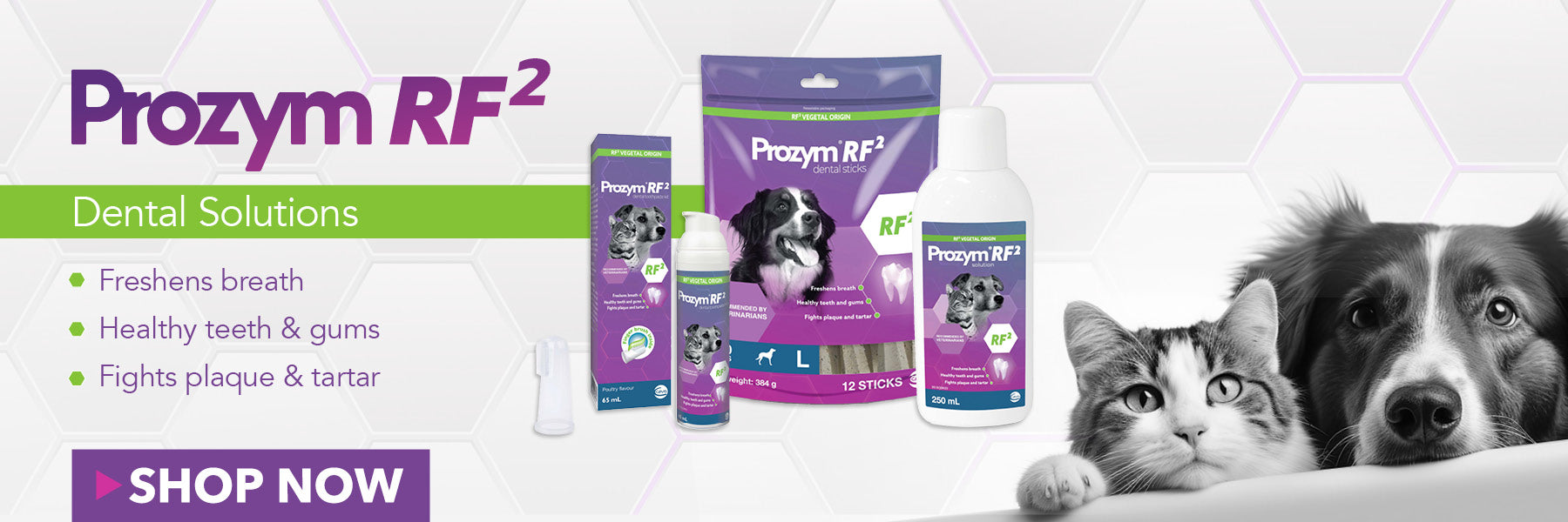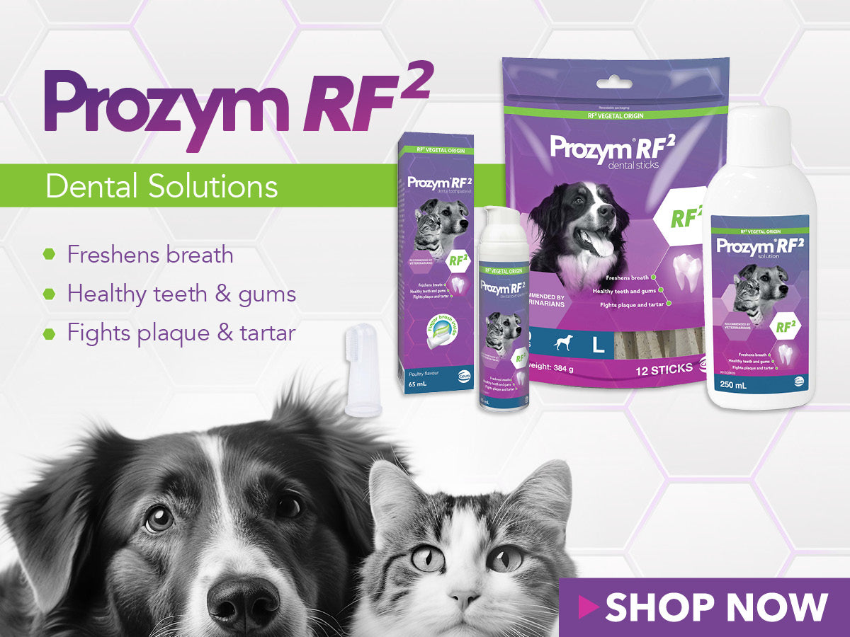 Prozym dental solutions for dogs and cats help fight plaque, tartar and bad breath.