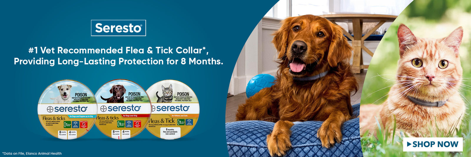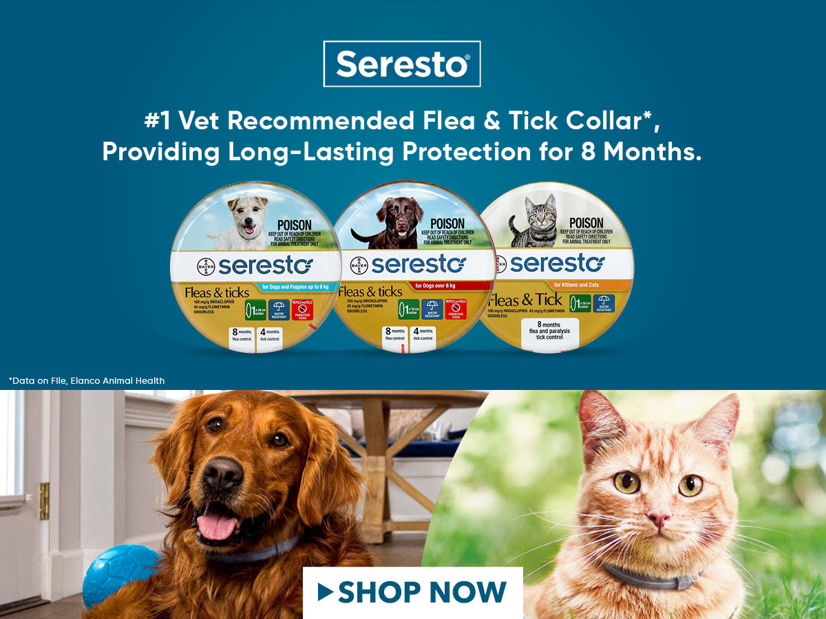 Seresto Collars are water resistant and odour free and and provide long duration flea and paralysis tick protection for your dog or cat. The collars provide 8 months protection against fleas and ticks for cats; 8 months flea protection and 4 month tick prevention for dogs.