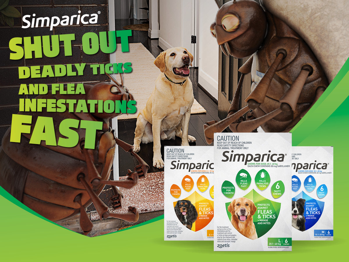 Simparica for Dogs provides complete parasite control for your dog in one simple monthly chew.