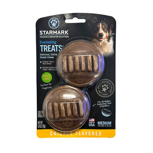 Starmark Everlasting Treats are long lasting dental chews that are hard like a bone and help keep your dog's teeth clean. Pair them with the Starmark Everlasting Treat toys for challenging chewing fun.
