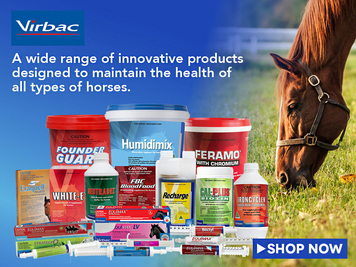 Virbac have spent over 40 years mastering horse health and are trusted experts in the field for Australian horse owners. Using a combination of research and advice from top equine vets they aim is to provide peak health and performance for every horse.