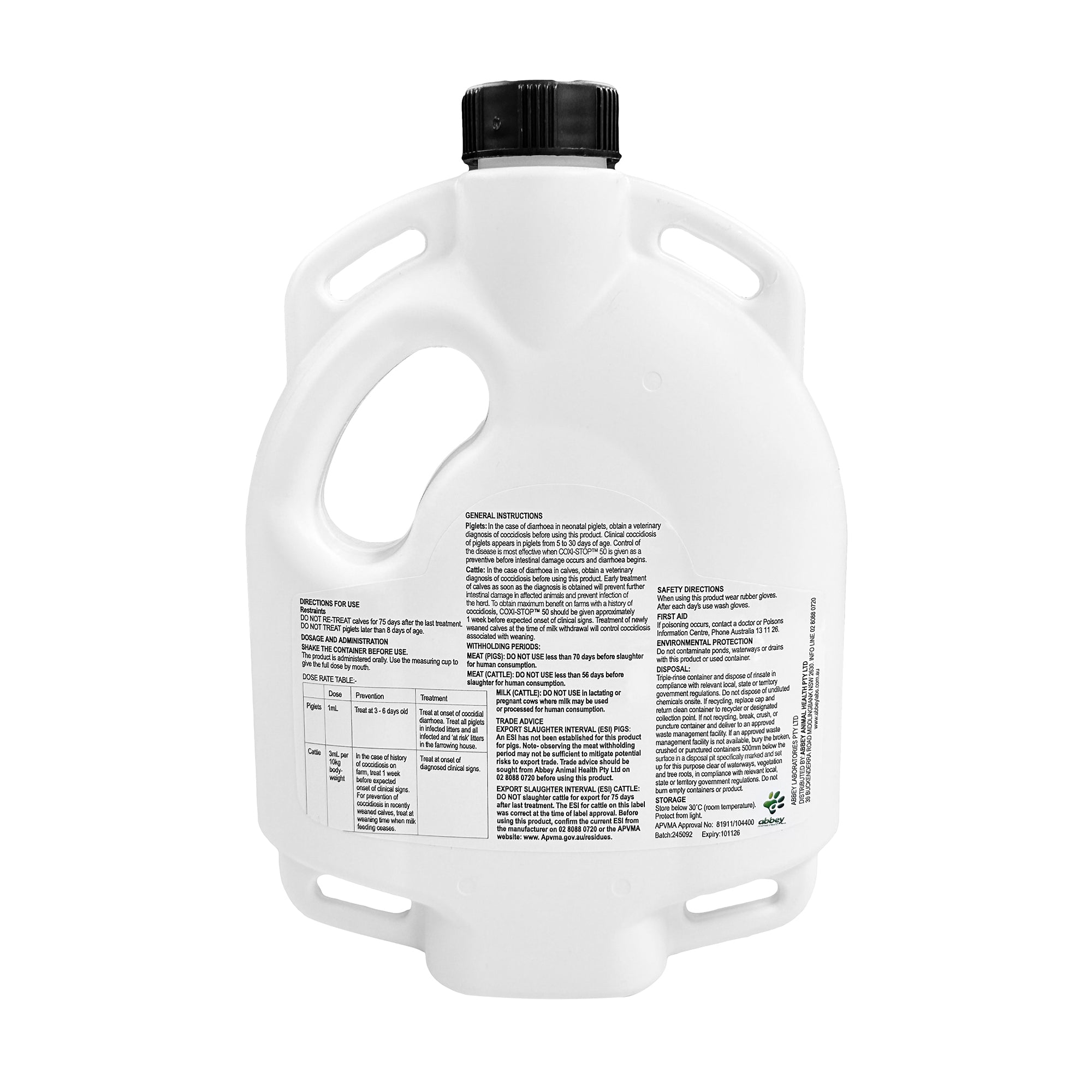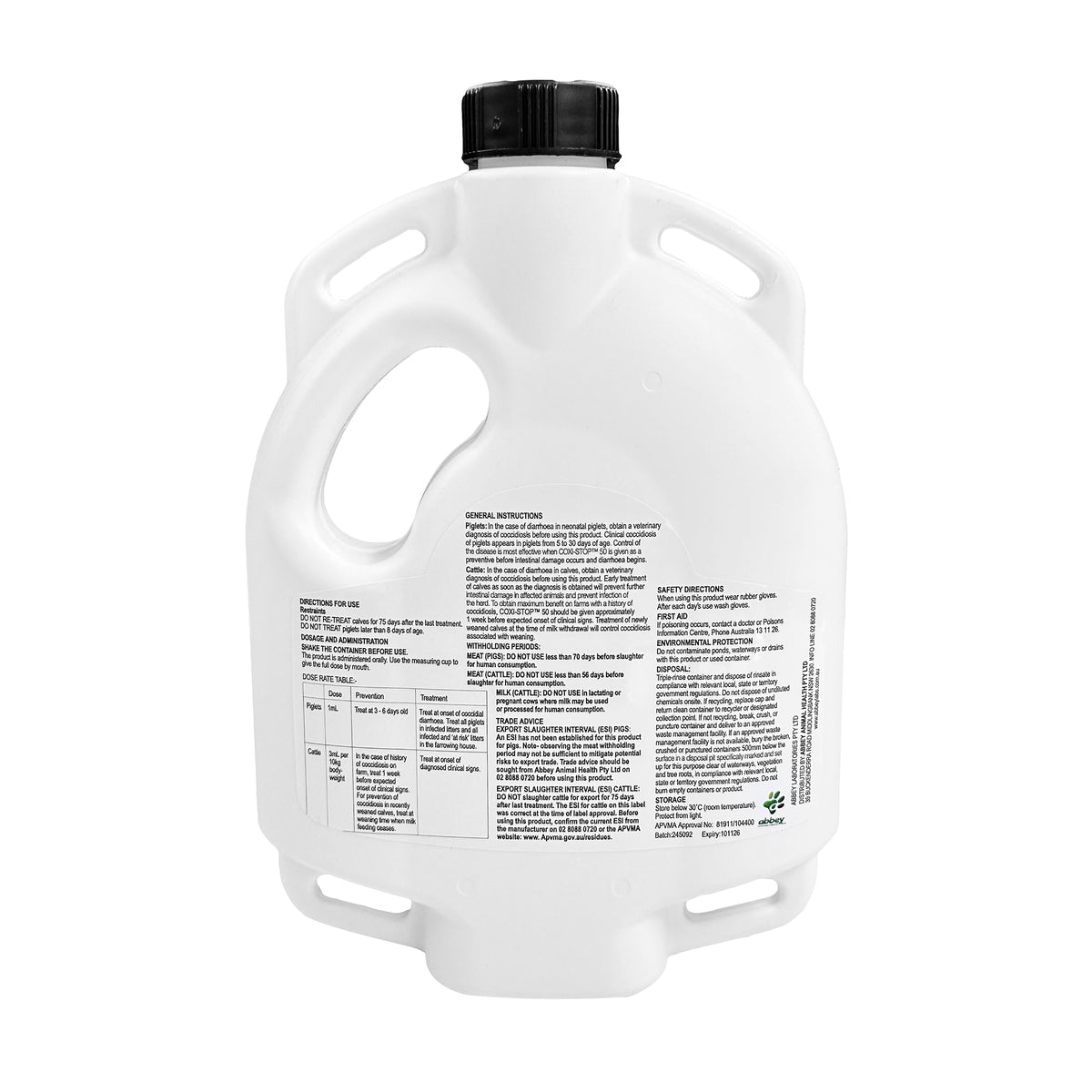 Abbey Coxi-Stop 50 Coccidiocide for Piglets & Cattle 1L