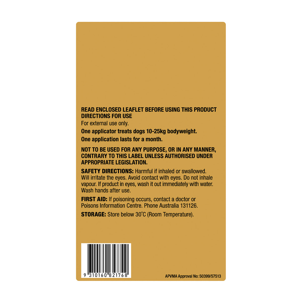 One applicator treats dogs 10kg to 25kg bodyweight.