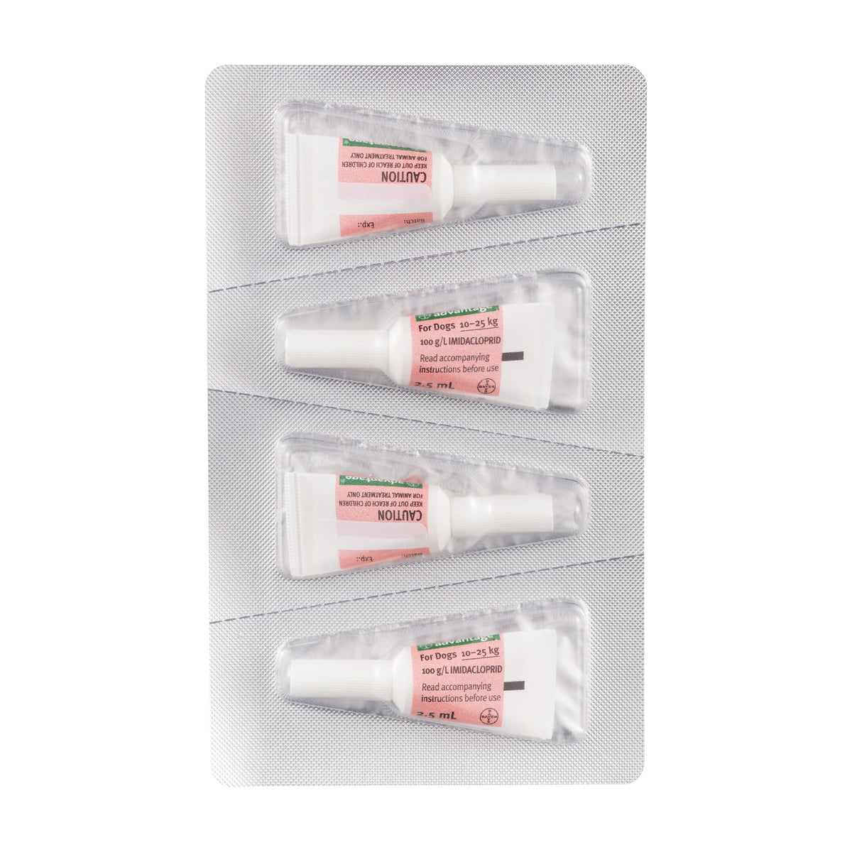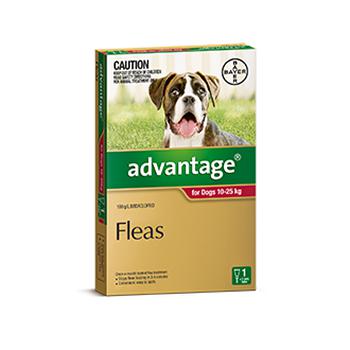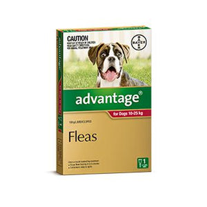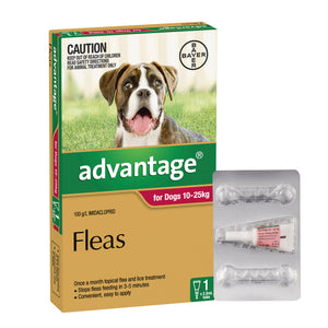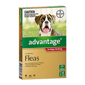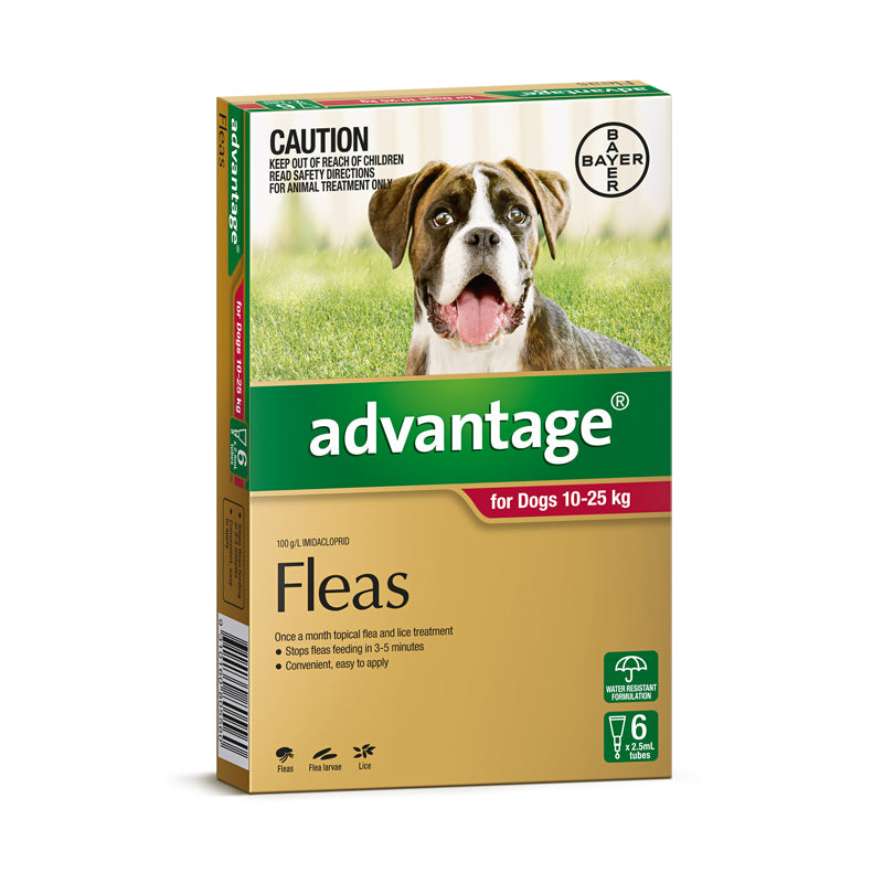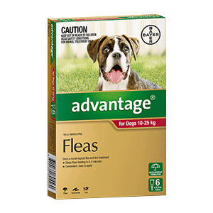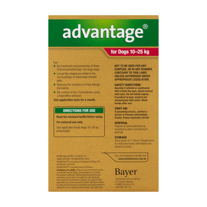 Advantage for Dogs 10kg to 25kg is an easy-to-use spot-on flea treatment. Its super ingredient stops fleas biting within 3 to 5 minutes and kills both adult fleas and larvae within 20 minutes.
