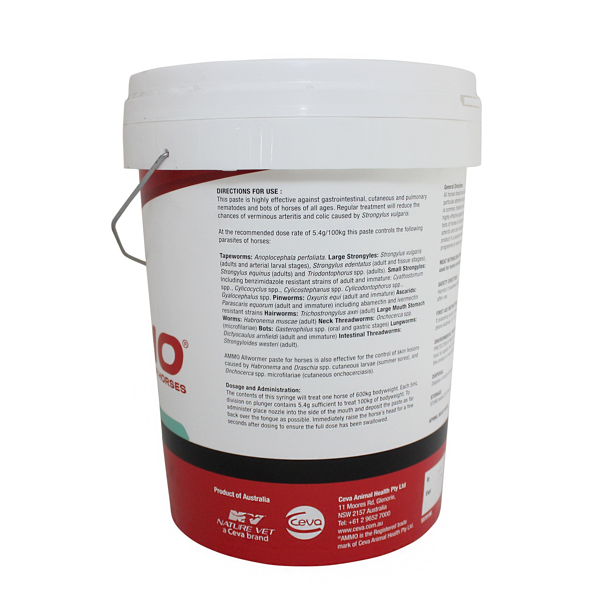 AMMO Allwormer Paste is a complete broad-spectrum wormer for horses that treats and controls roundworms, tapeworms, bots, and a wide range of internal parasites. It also helps prevent skin lesions caused by biting external parasite larvae, including Habronema and Draschia species. This makes it suitable for horses at all stages of life, including foals from four weeks of age, pregnant mares, stallions, and debilitated animals.