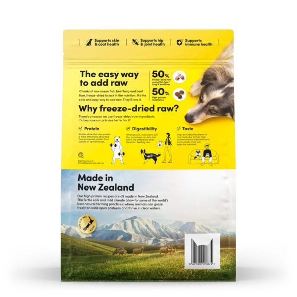 RawMix50 with Ocean Fish is a tasty blend of 50% freeze-dried raw ocean fish and beef organs, combined with 50% high protein meat bites. A safe and easy way to add the natural goodness of raw.