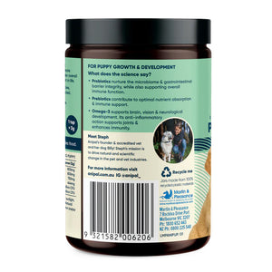 And let's not forget about the favourite ingredient: potent Omega-3 DHA (standardised to 10% DHA). This ingredient is key to support your pup's brain, vision, and neurological development, helping them grow into the brightest, healthiest version of themselves.