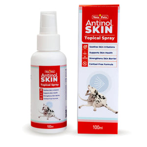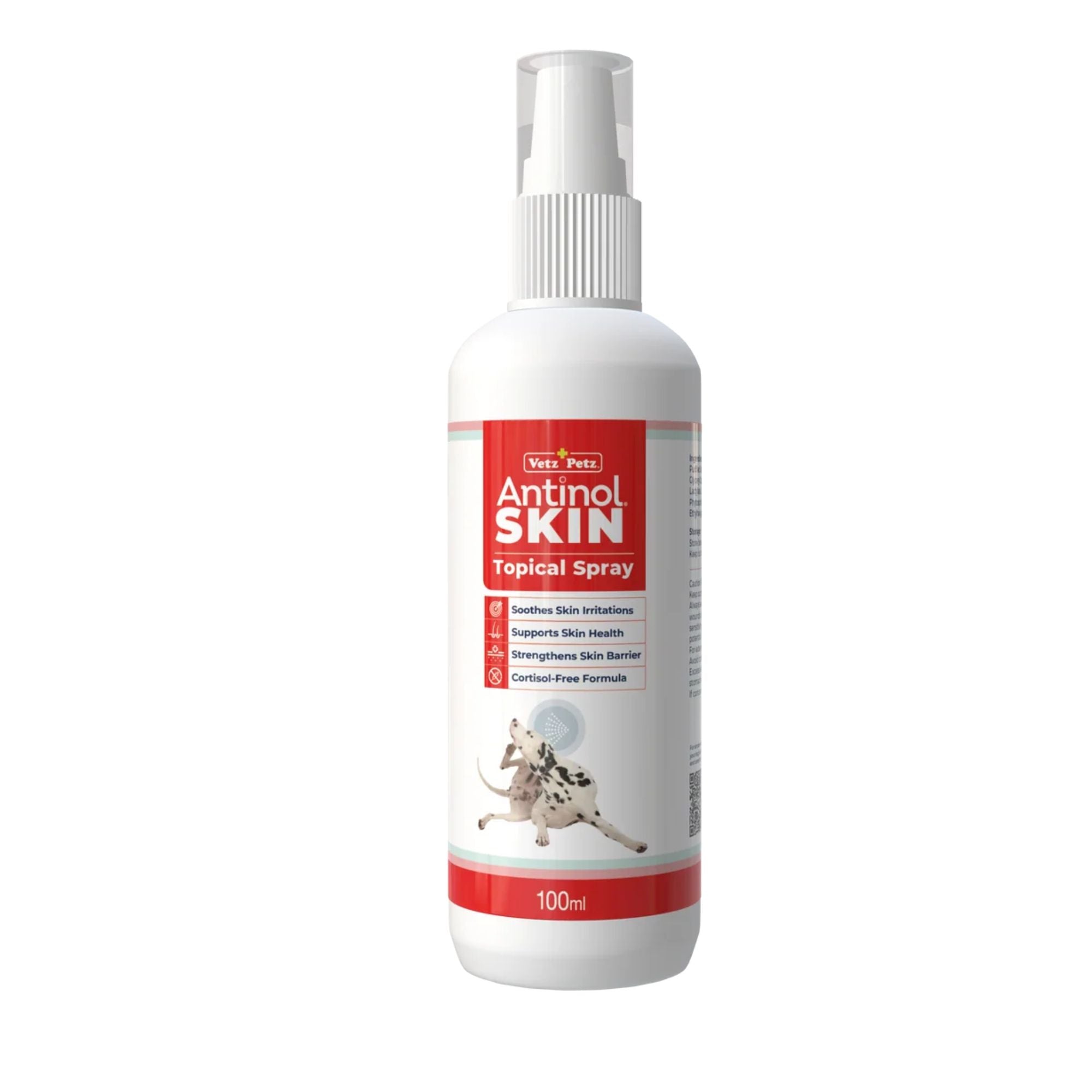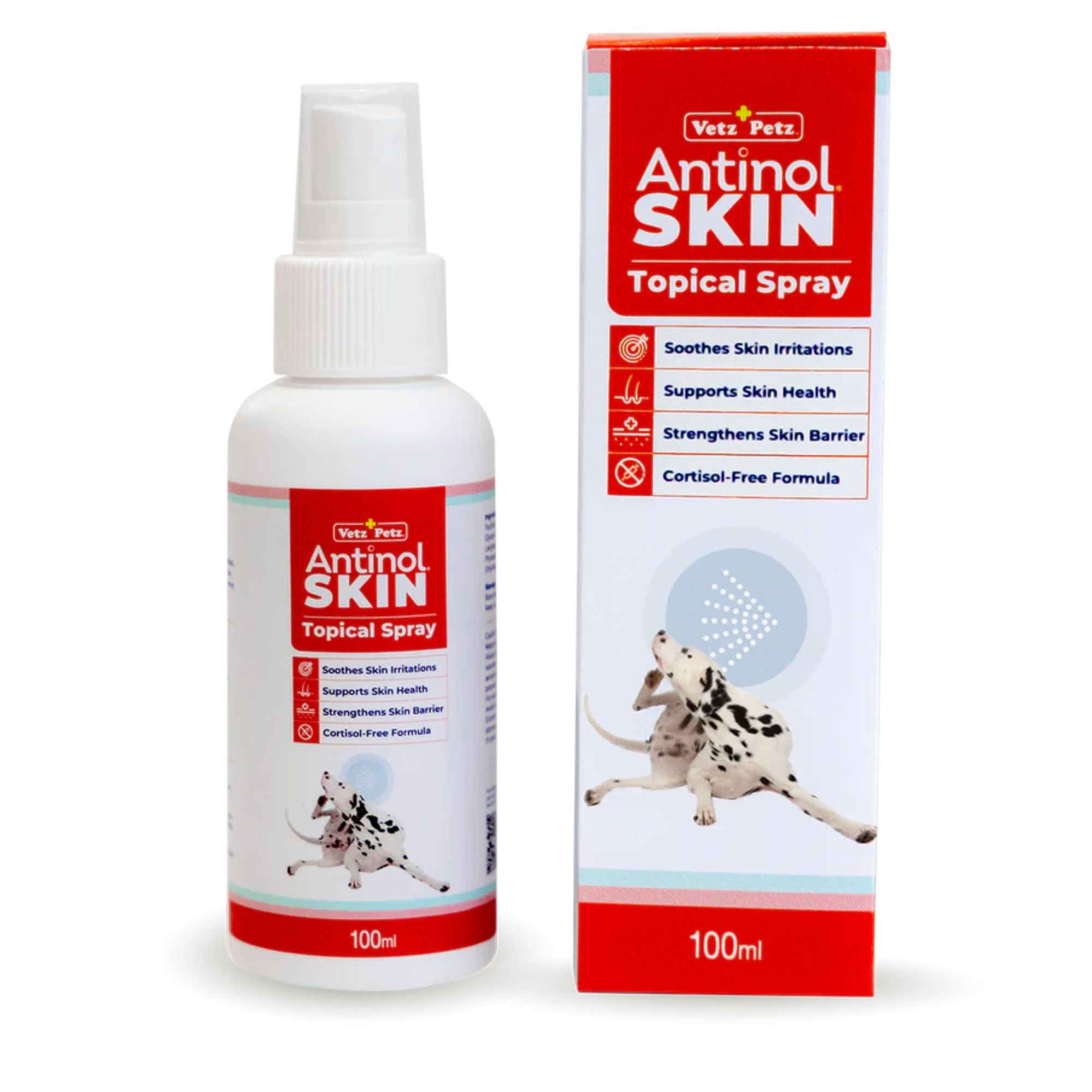 Antinol Skin Topical Spray is designed to hydrate dry skin, calm irritation and protect against everyday triggers like grooming or allergens. It supports a healthy skin barrier while helping to maintain comfort and resilience.
