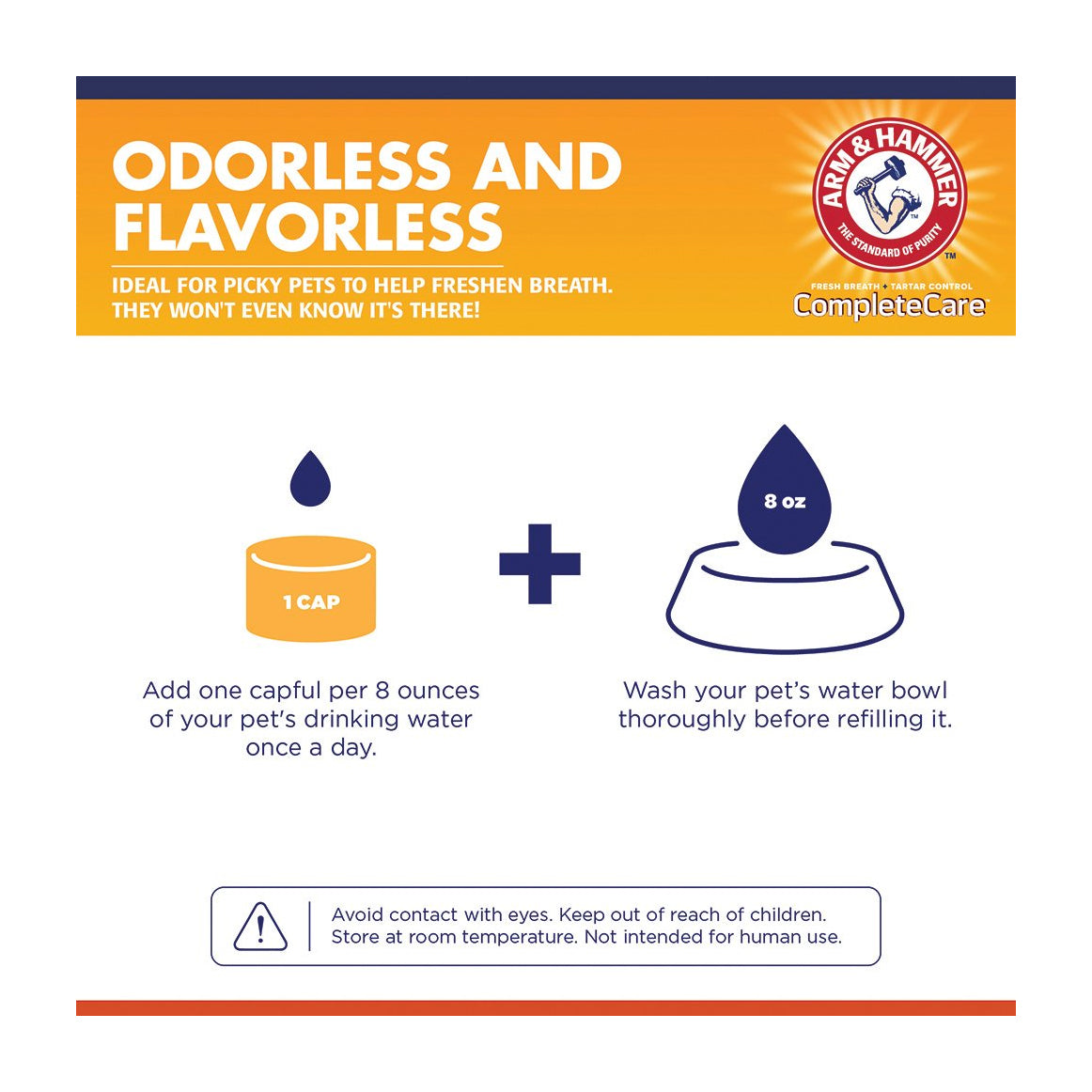 Arm & Hammer Complete Care Cat Dental Water Additive helps with tartar control which can prevent tooth decay and gum disease.