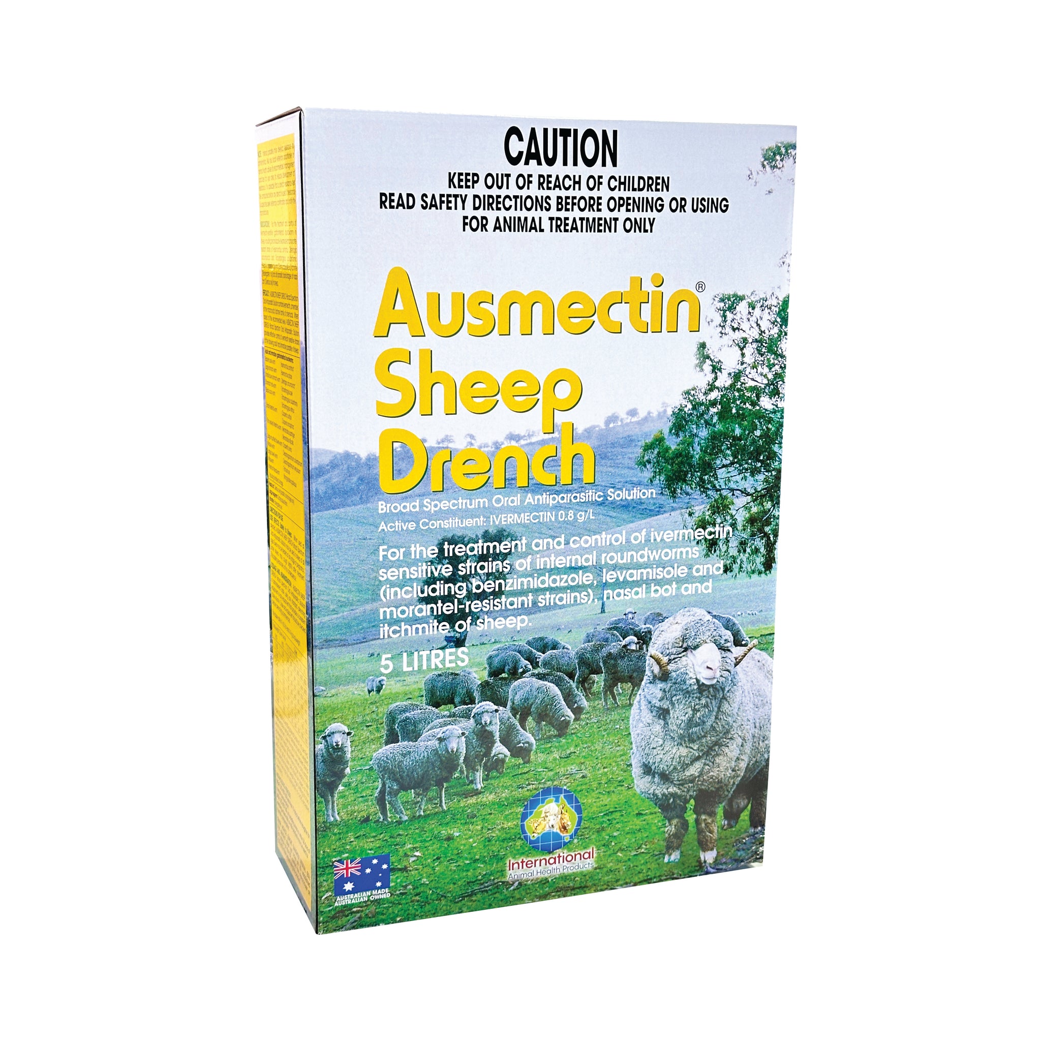 Ausmectin Sheep Drench is a Broad Spectrum oral antiparasitic solution for control and treatment of ivermectin sensitive internal parasites including roundworms, nasal bot and itchmite of sheep.