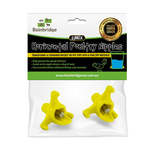 The style of this horizontal water nipple allows you to side mount the nipple to create your own drinker with any container or bucket.