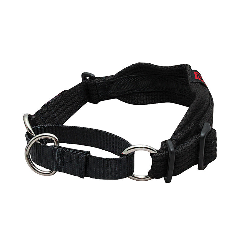 The collar has a wide, tapered neck pad and a tightening action for security, so your dog can't slip its collar.