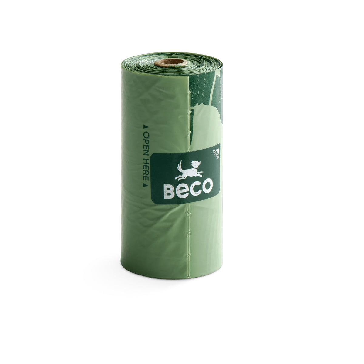Beco Unscented Poop Bags are big, strong and leak-proof. Coming in at 22.5 x 33cm they are extra long and thick to protect your hands. Made using 100% post-consumer recycled material, every roll of bags comes on a recycled cardboard core and the cardboard packaging is recycled and recyclable.