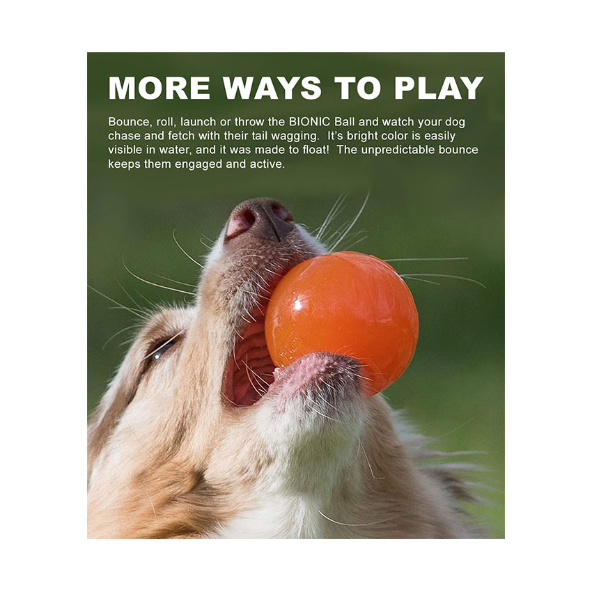 MORE WAYS TO PLAY: The BIONIC Ball has great bounce, can float and has a bright BIONIC orange colouring for visibility. It’s great for fetch, and both indoor and outdoor play. The medium size BIONIC Ball is sized to fit most ball launchers and throwers.