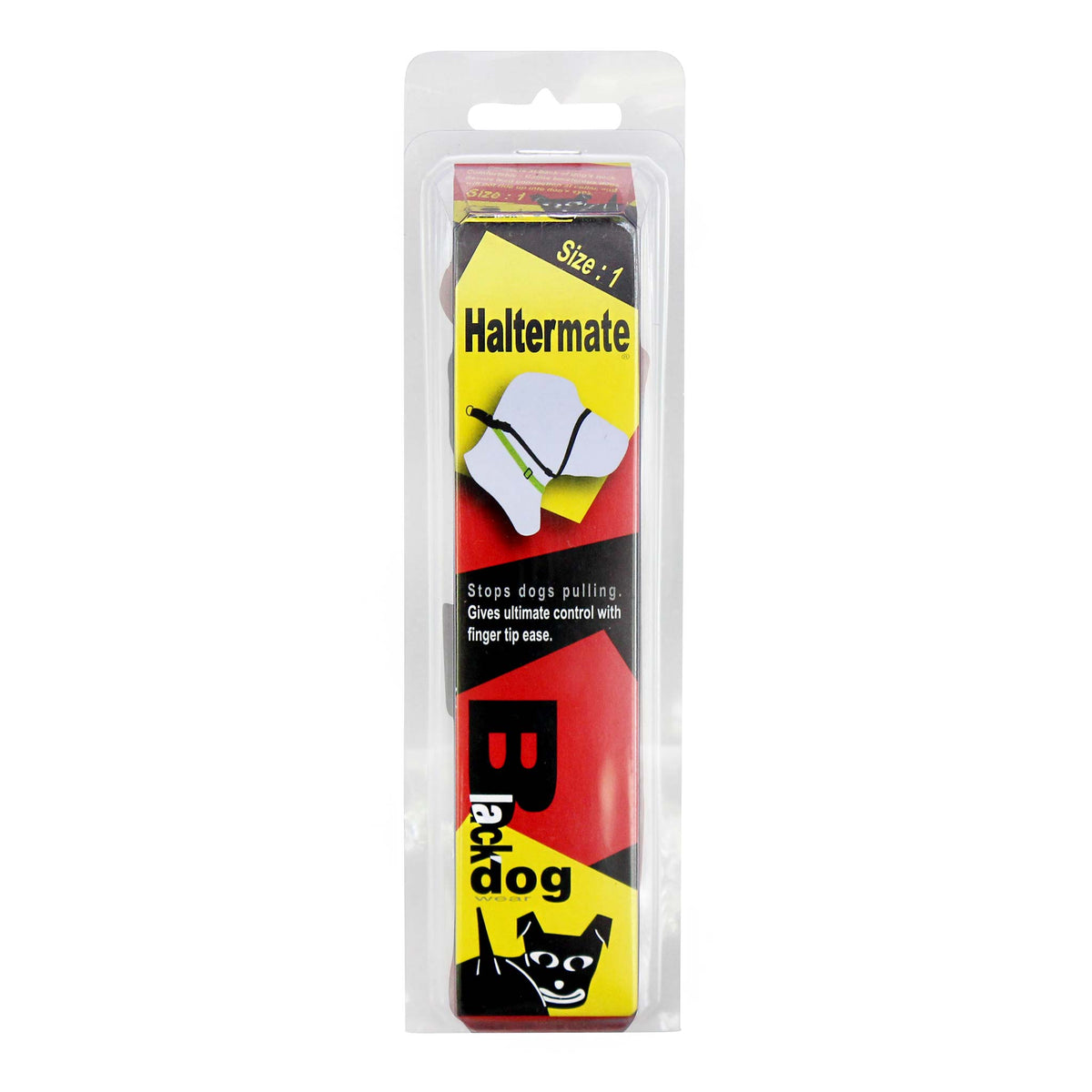The Haltermate is easier to fit and adjust, yet keeps all the great features which made the original comfortable and effective.It sits securely and will not ride up into your dog's eyes. The lead attaches at the back and dogs respond quickly and easily to lead pressure.