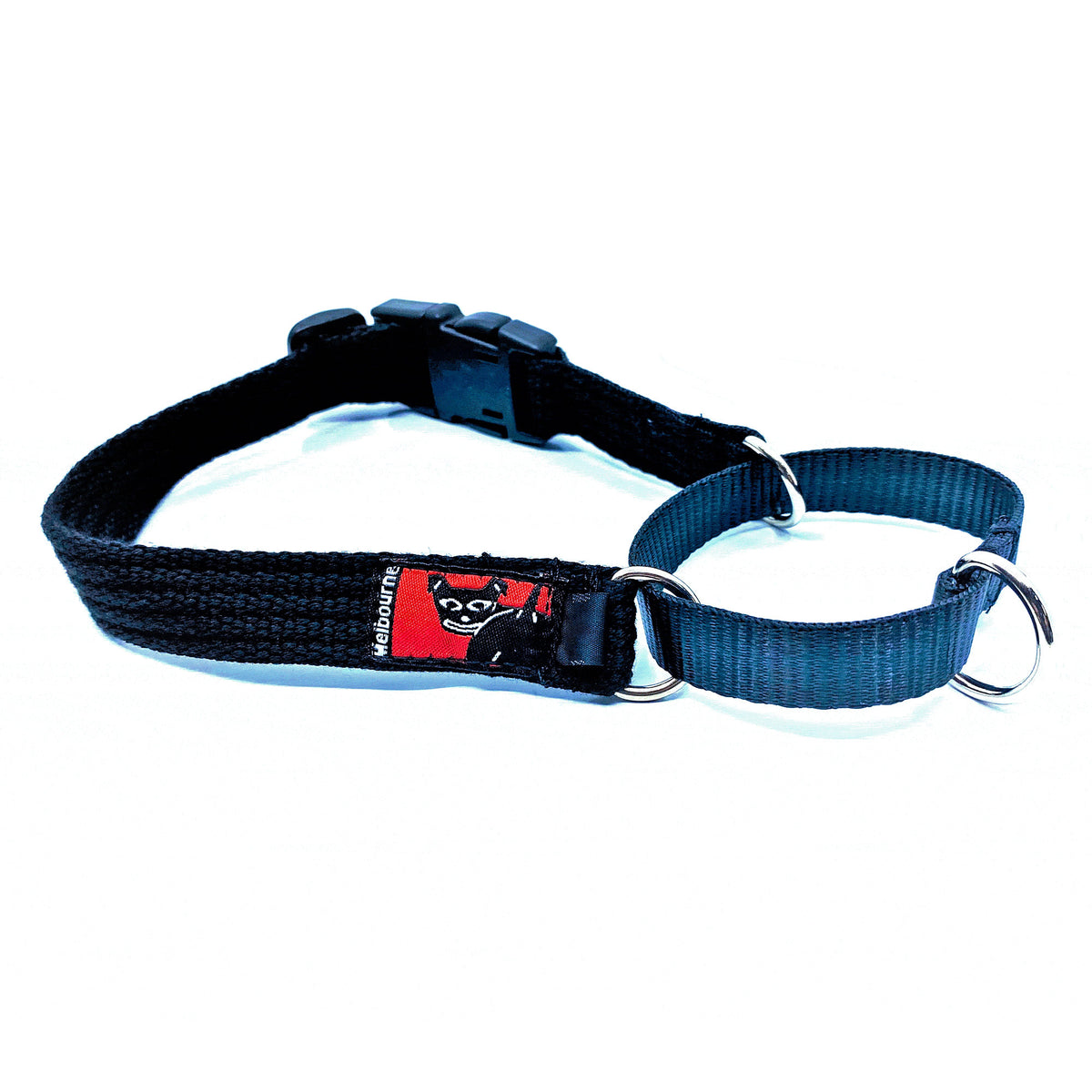 Training Collars were Black Dog's first ever product. They were designed for training without the harshness and pain of a chain choker. Nowadays, the training collar is generally used more as a security collar because of the non-slip security of a martingale design - the design helps prevent dogs slipping out of their collar.
