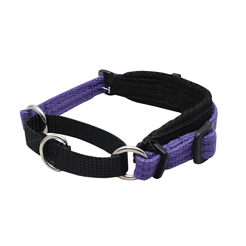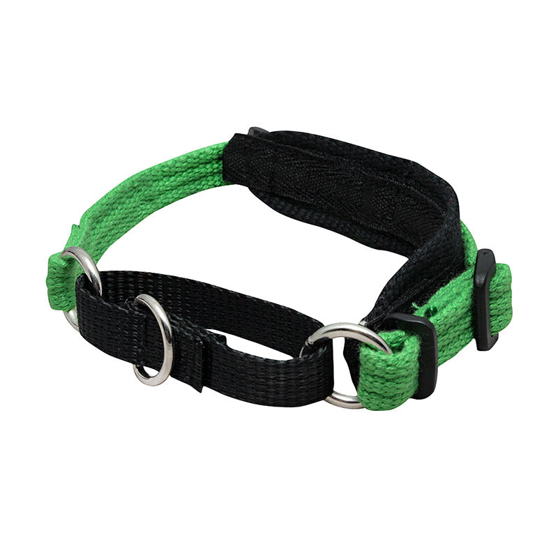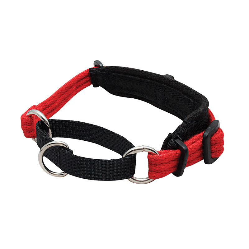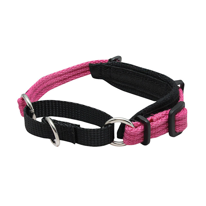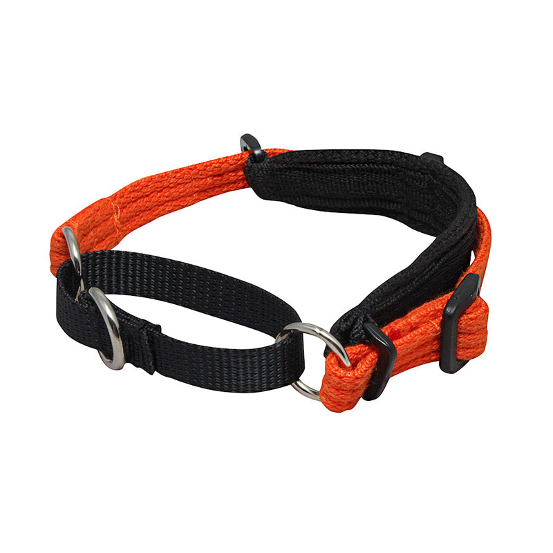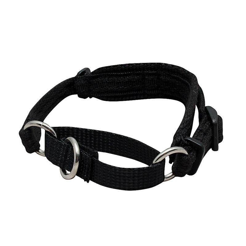 This collar is fitted over the dog's head and has a martingale tightening action for security.