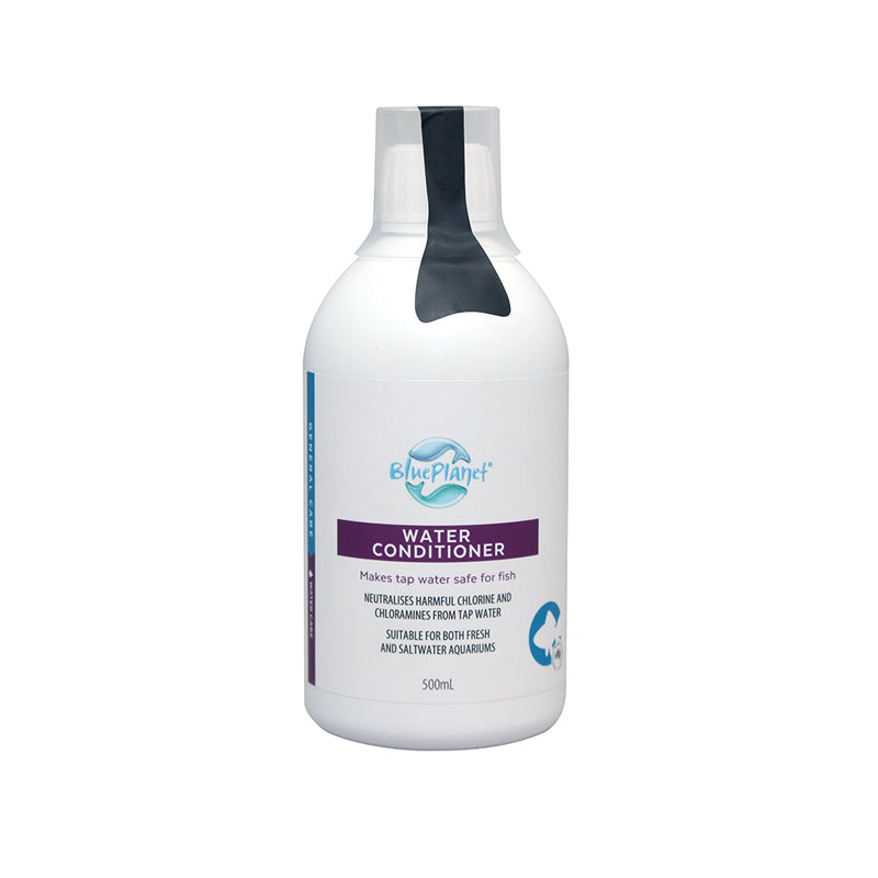 Blue Planet Water Conditioner makes tap water safe for fish. It neutralises harmful chlorine and chloramines from tapwater.