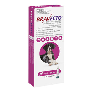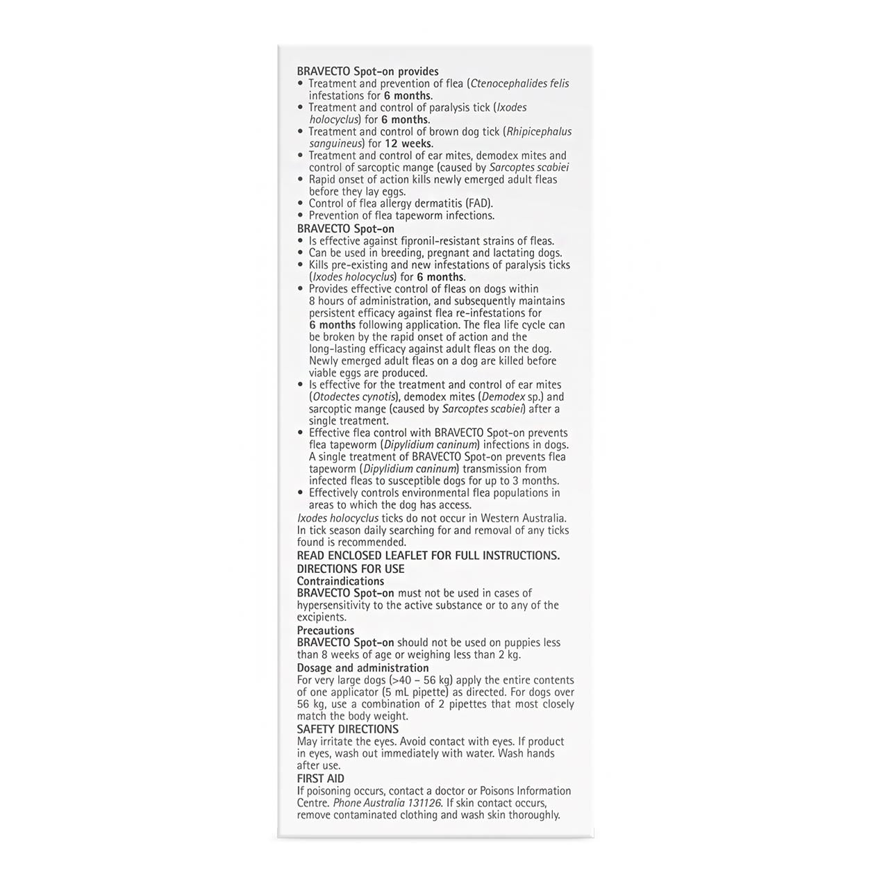 For smaller sized dogs, check out Bravecto Spot-on for Dogs 10kg-20kg (Green) and Bravecto Spot-On for Dogs 20-40kg (Blue)