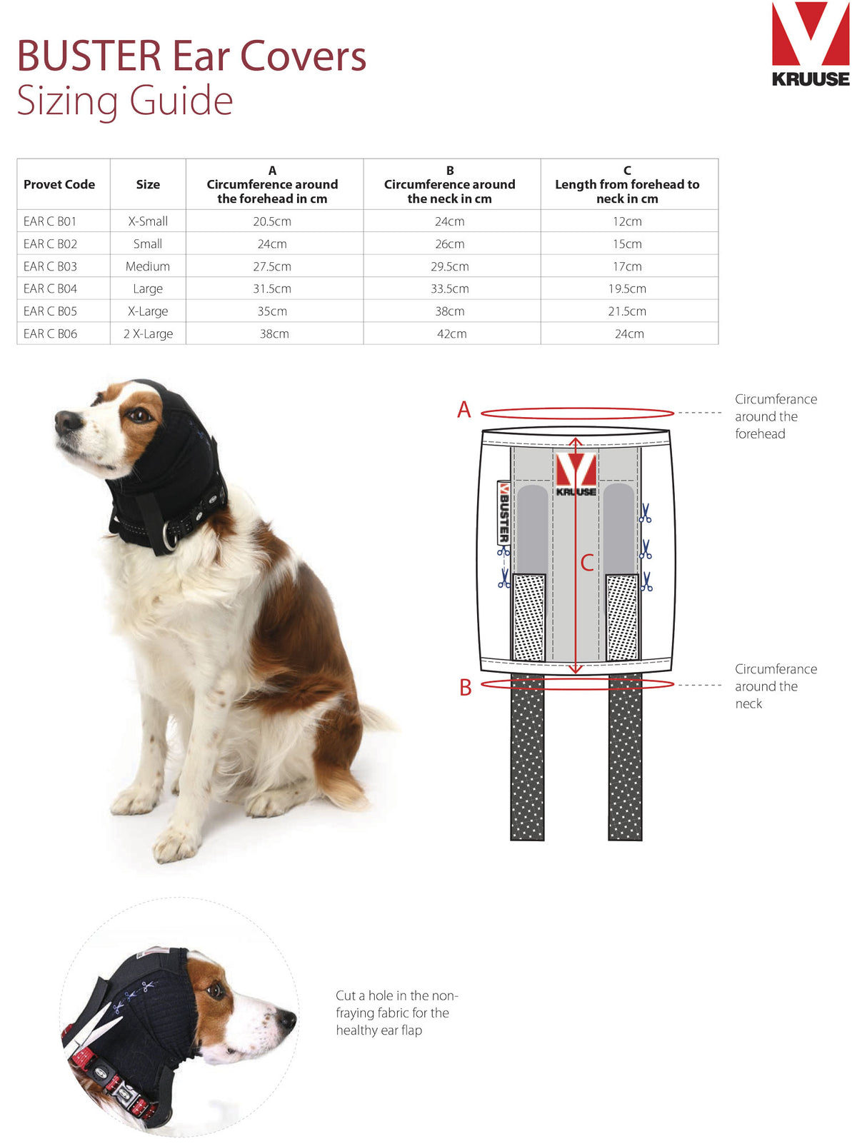 Size Circumference around the forehead (cm) Circumference around the neck (cm) Length from forehead to neck (cm)