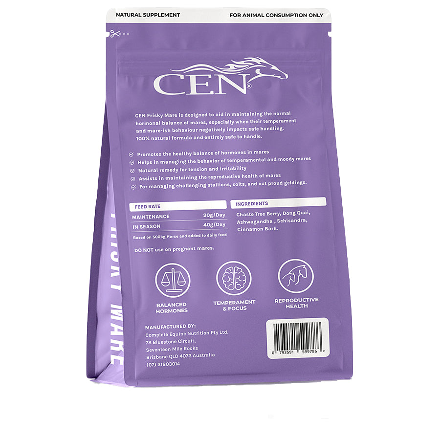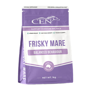 CEN Frisky Mare is designed to aid in maintaining the normal hormonal balance of mares, especially when their temperament and mare-ish behaviour negatively impacts safe handling. 100% natural formula and entirely safe to handle.