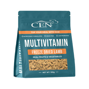 CEN Multivitamin Freeze Dried Lamb Chews for dogs are meticulously crafted to provide your beloved pet with a holistic approach to their well-being. Sourced from the pristine pastures of New Zealand, these multivitamin chews are made from pure whole food ingredients, ensuring your dog receives a complete and balanced diet with no daily feeding restrictions.