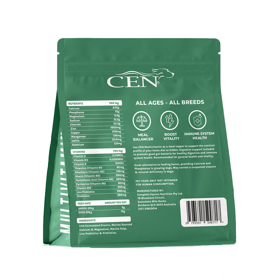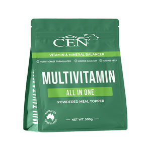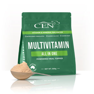 CEN Multivitamin Powdered Meal Topper Supplement can help fill in the nutritional deficiencies that may be present in your dog’s diet.