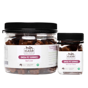 Pets up to 5kg = 1 Omega Pet Gummy per day.