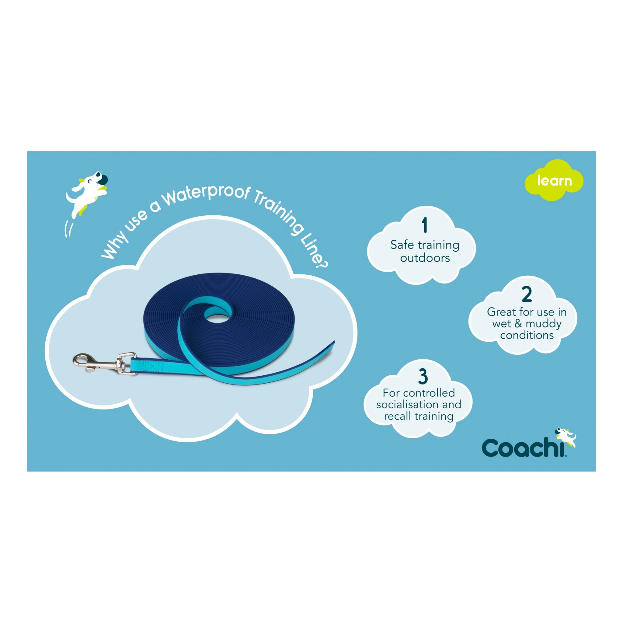 The Coachi Waterproof Training Line, is great for safe training outdoors. It allows you to give your dog more freedom whilst keeping control in new situations. Perfect for puppies, newly acquired and nervous dogs.