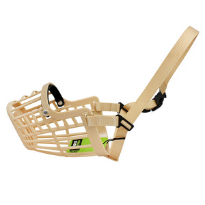Comfort muzzles are good for all dogs from the couch-potato to the pit-bull. These muzzles are strong and secure, but still comfortable for your dog to wear for longer periods. They allow good airflow for your dog to breathe and keep cool. Beige in colour.
