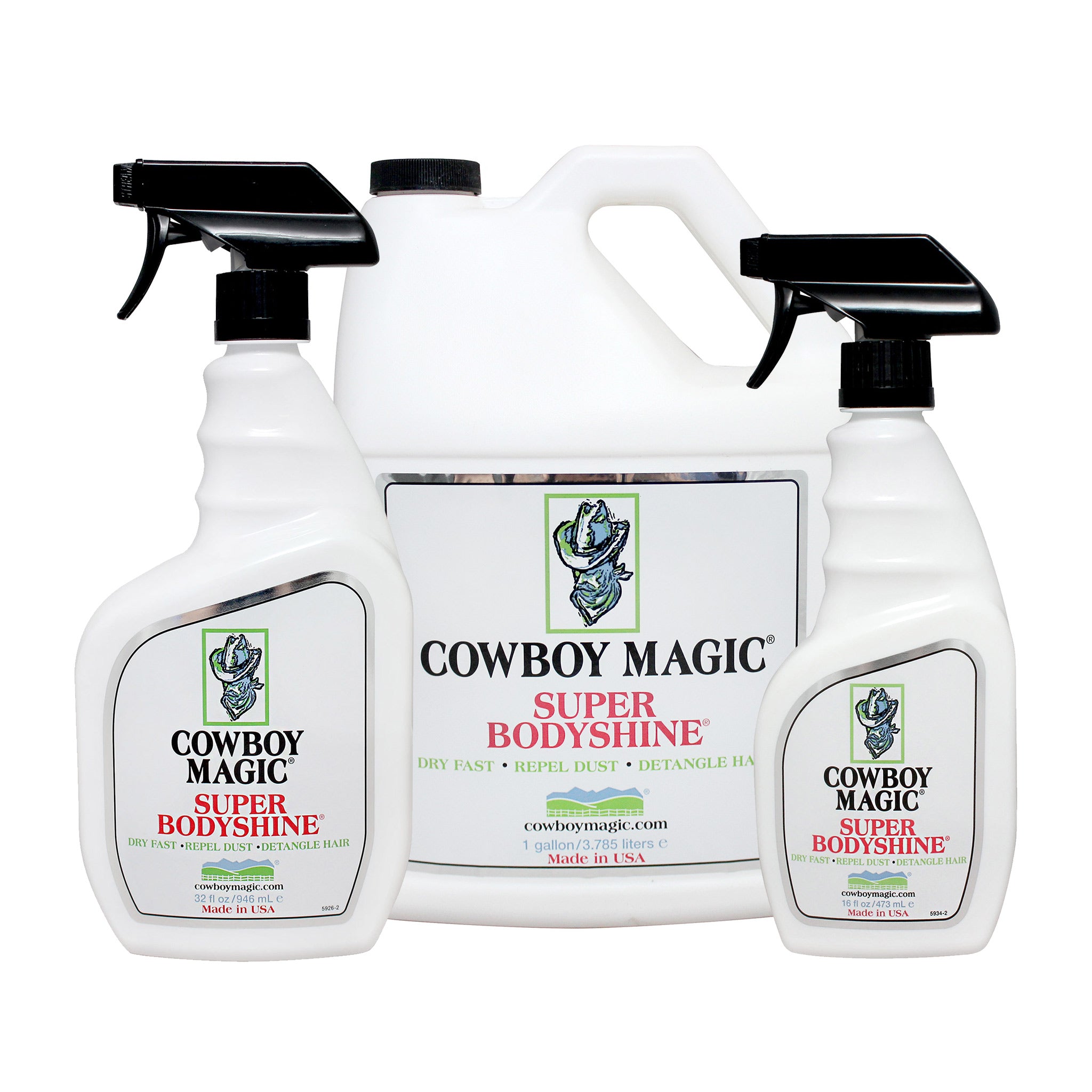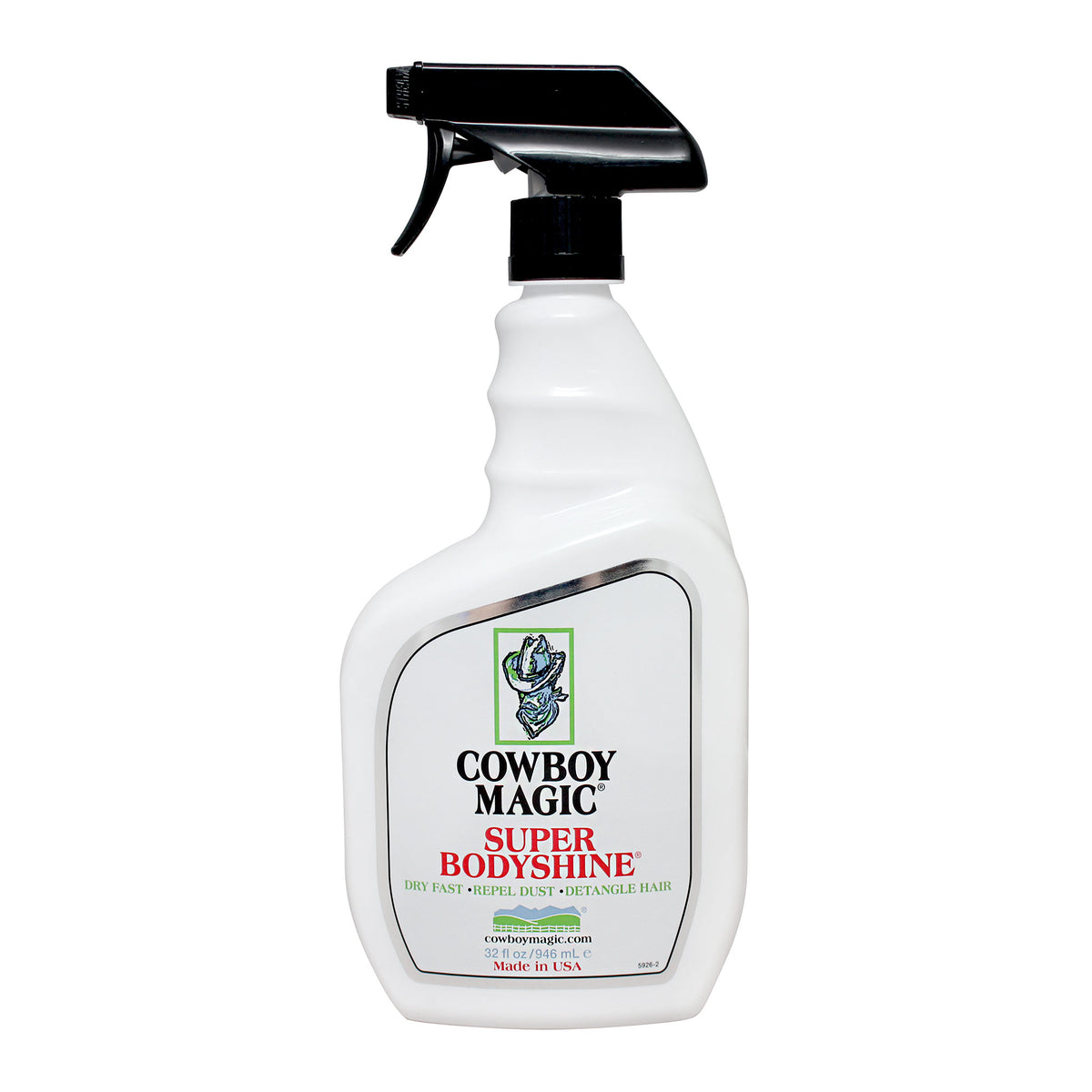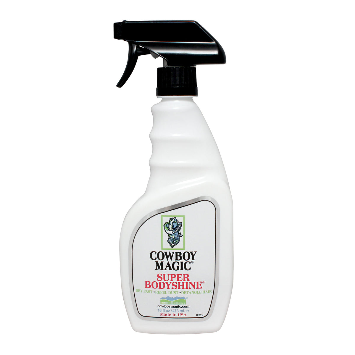 Cowboy Magic Super Bodyshine is formulated to give hair a super shine. It also helps repel show ring dust and dries fast.