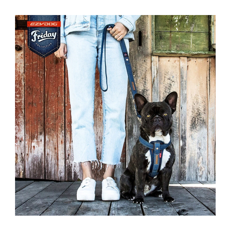 In addition to all the benefits of the Standard EzyDog products, the Denim products all come equipped with custom leather patches, jean studs, brass hardware and of course, a high grade denim finish.