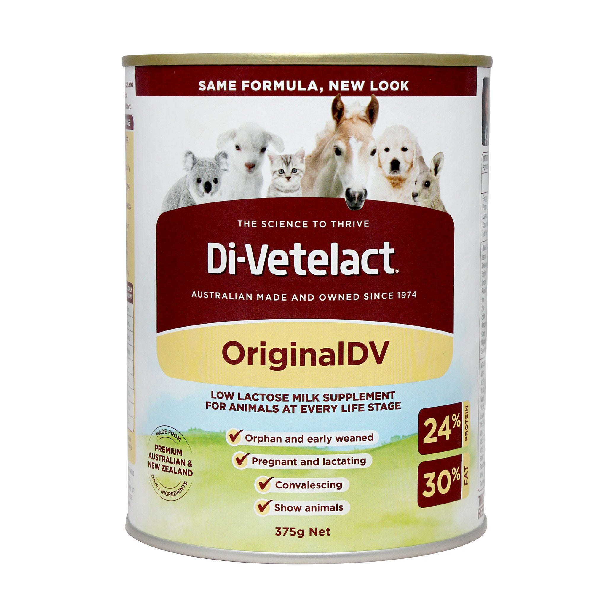 Di-Vetelact is an Australian made powdered milk formula suitable for all kinds of animals. The premium grade ingredients are sourced from Australian and New Zealand dairy farms.