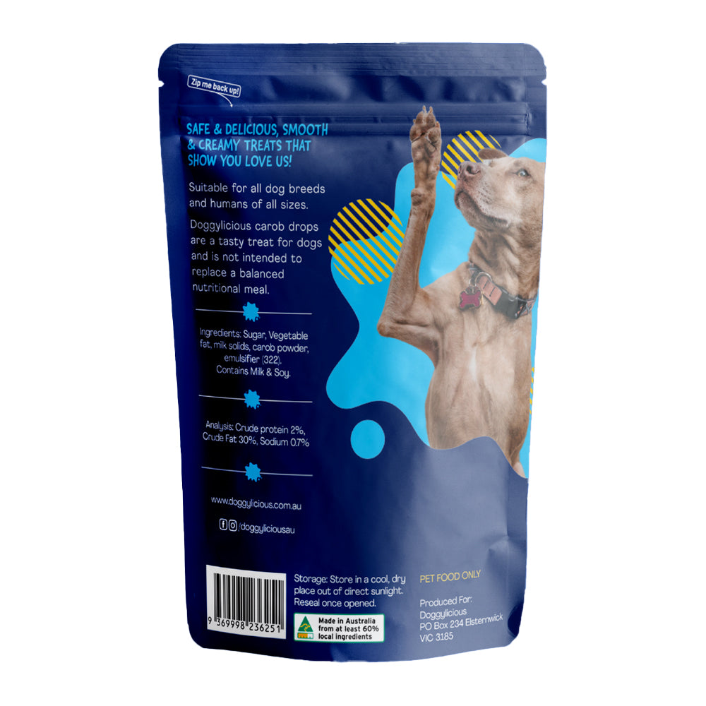 Doggylicious Carob Drops are tasty training reward treats. They can be used in dog friendly baking recipes or just hide a handful in their favourite toys.