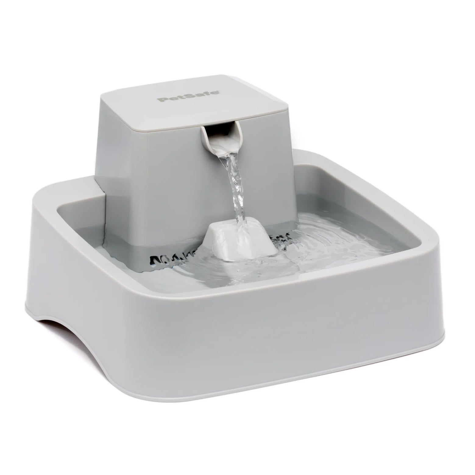 The PetSafe Drinkwell 1.8 litre Pet Fountain is designed with you and your pet in mind. This automatic water bowl features a free-falling water stream with adjustable flow control. Choose from nearly silent circulation on the lowest setting to a tranquil stream on the highest. The flow control allows you to tailor the water flow to your pet’s needs. When it’s time to refill, simply use a jug to fill the bowl to the desired level.