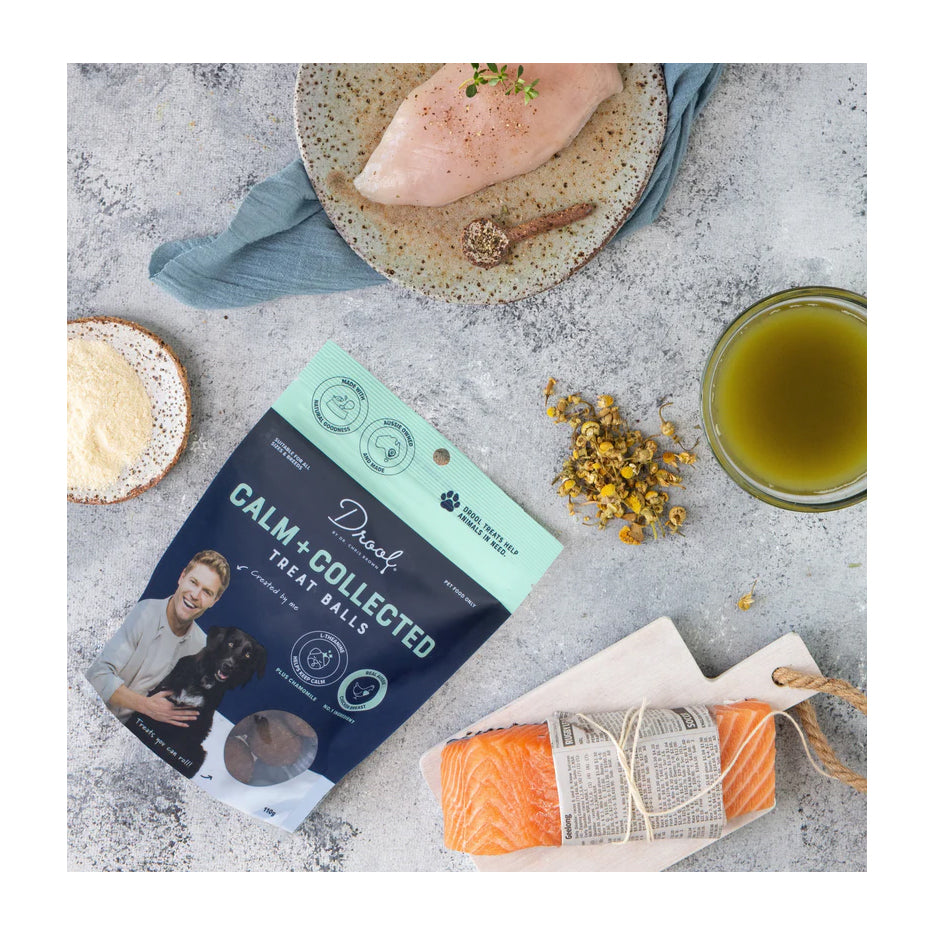 Drool Calm + Collected Treat Balls can help your pet hande the stress of everyday life and those moments that lead to anxiety. Now in human-grade, real Australian salmon.