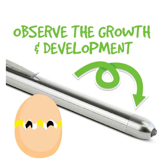 This egg candler is a small pen size portable light that has a surprisingly effective bright strong cool bulb.