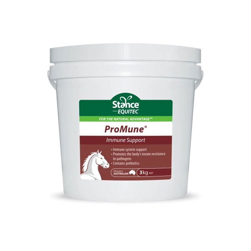 Equitec ProMune is a supplement formulated to offer an extensive range of nutrition to support your horse's immune system. Horses may suffer from coughs and colds in colder months leading to chest congestion and breathing difficulties due to mucous buildup. These breathing difficulties may result in decreased activity and performance. Horses may also experience depleted immune function after stressful events, periods of intense activities, change of season, injury or surgery.
