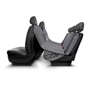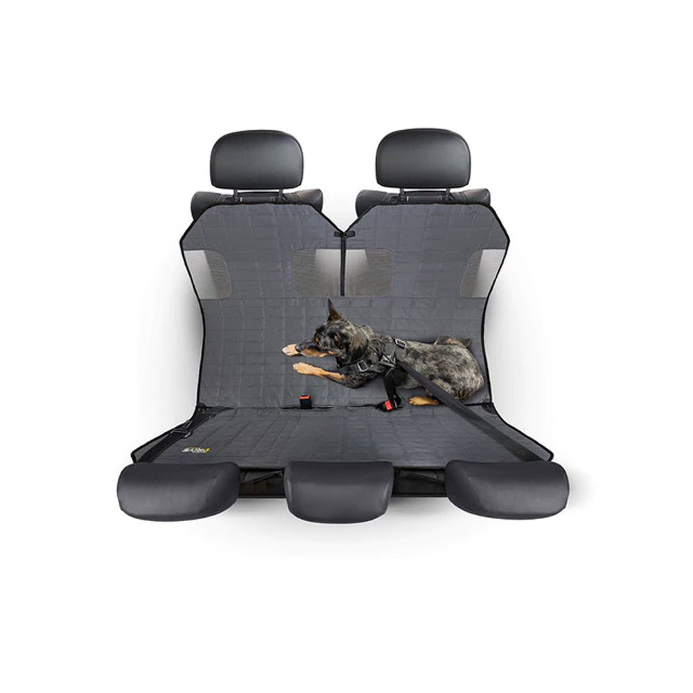 Firstly, place the cover across the back seat with top folded down and push tabs through the centre of the seat. Then simply attach straps around head rest and tighten. From there, switch between the different setup styles using the ZIPro Security system, a durable zip with locking mechanism located in the centre of the hammock that allows for either side to be put down.