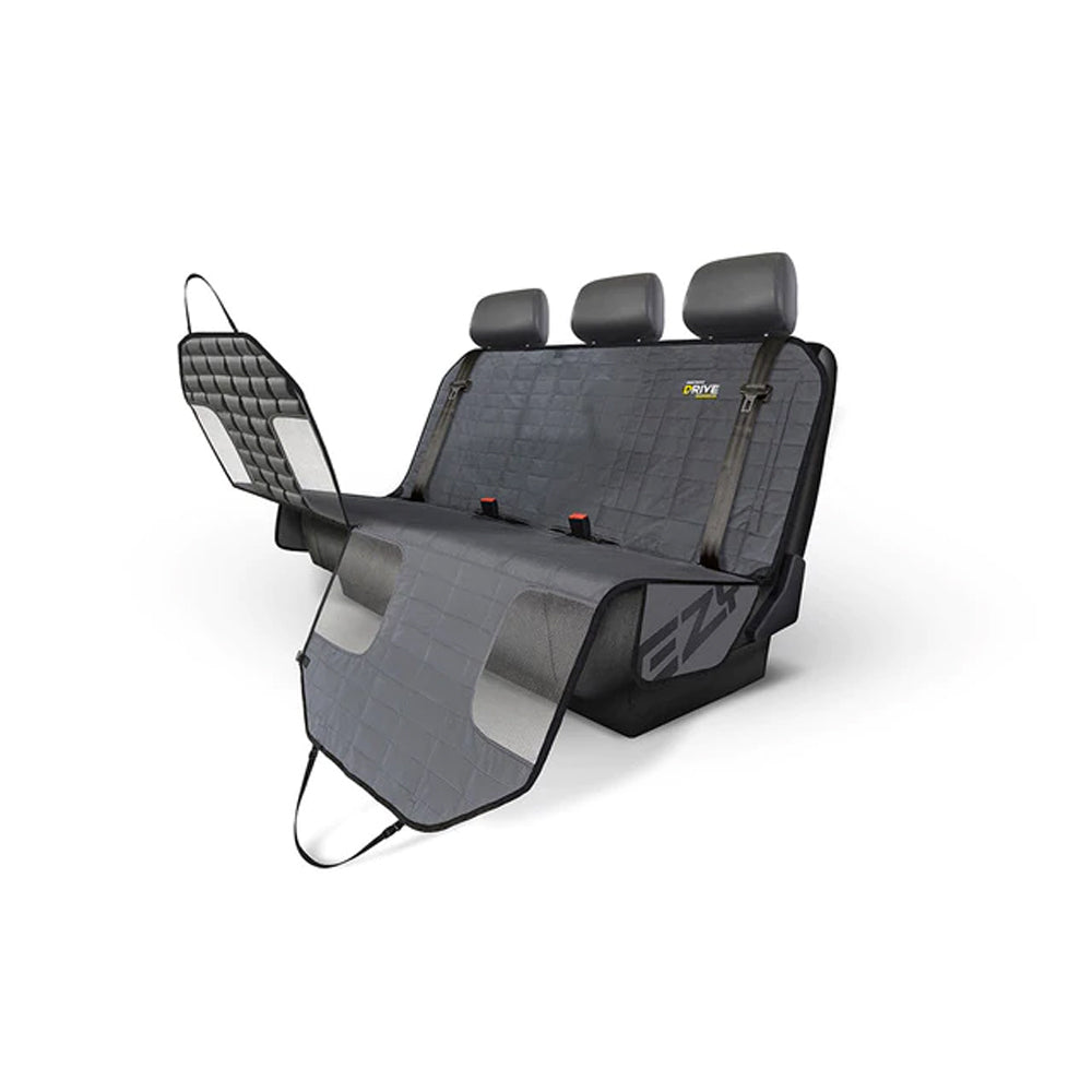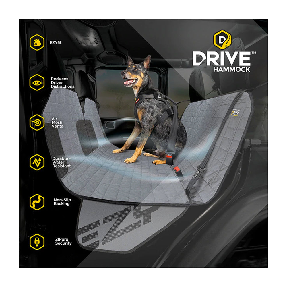 The Drive Hammock is a hammock-style seat cover for dogs to protect the backseats of your car.